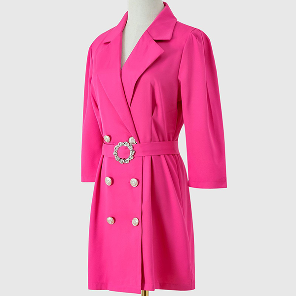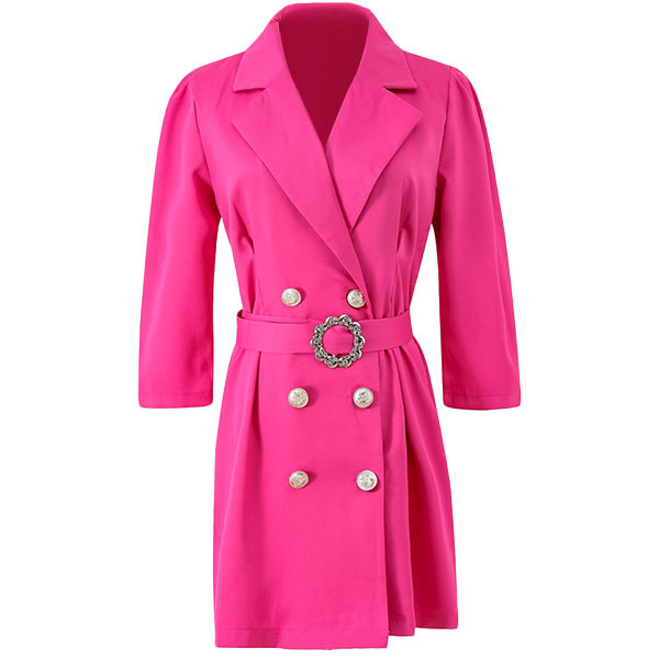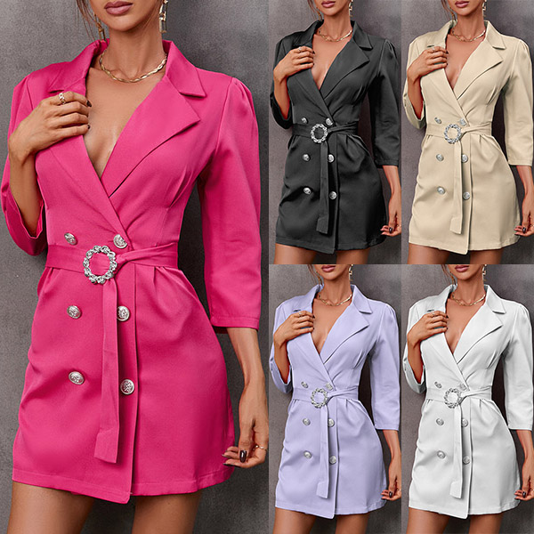 Elegant Solid Color Notch Lapel Elbow Sleeve Double Breasted Self-tie Suit Dress
