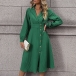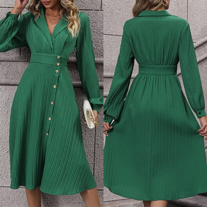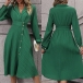 Elegant Solid Color Notch Lapel Long Sleeve Buttoned Dress