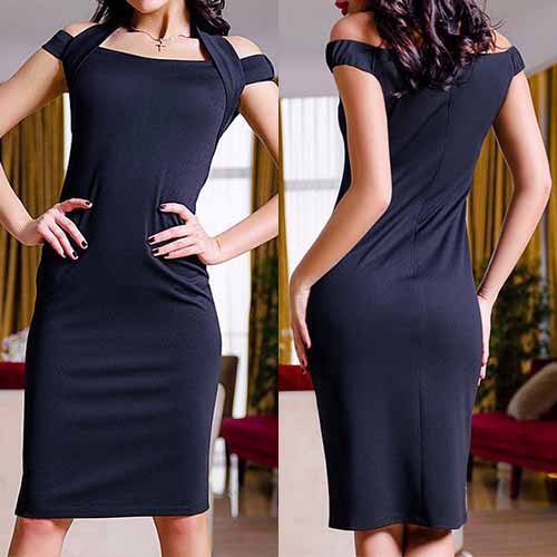 This bodycon dress, with solid color, off shoulder and halter design, would lead your boyfriend's rapid
