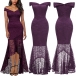 Elegant Solid Color Off-the-shoulder Fishtail Hemline Bodycon Party Dress
