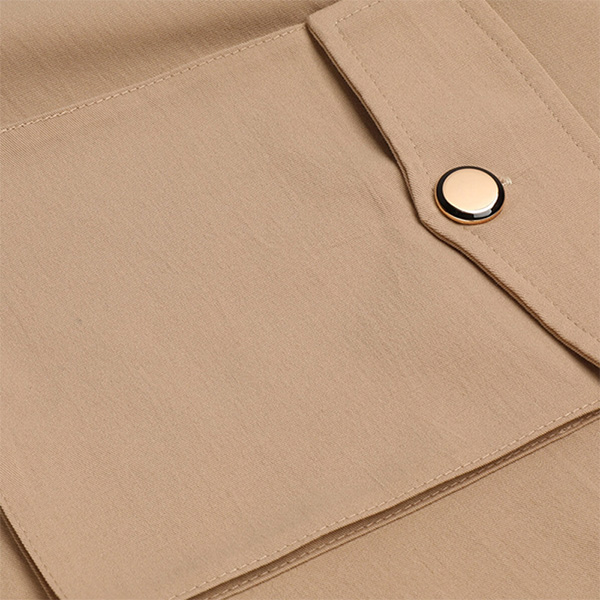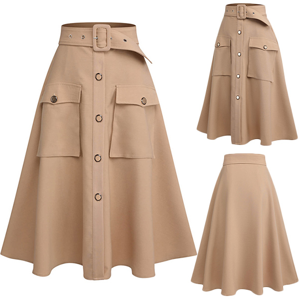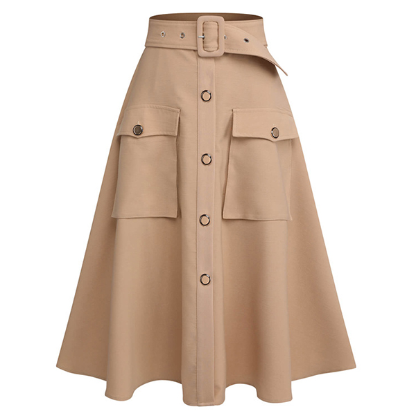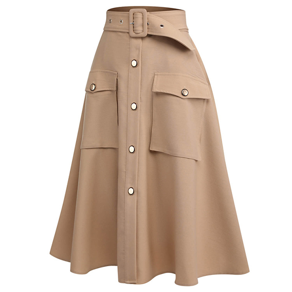 Elegant Solid Color Patch Pocket Buttoned High-rise Skirt with Belt