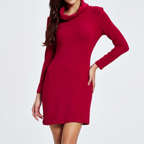 Enjoy this beautiful moment with this dress. Solid color style, complemented with pile collar and long