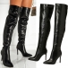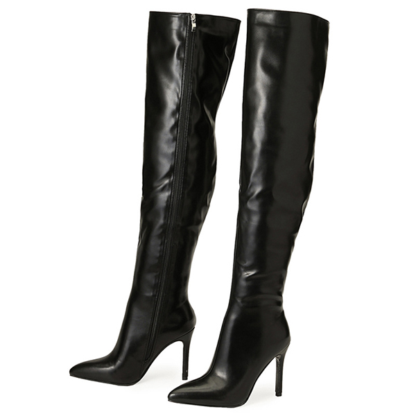 Elegant Solid Color Pointed-toe Side Zipper High-heeled Artificial Leather PU Over-the-knee Boots