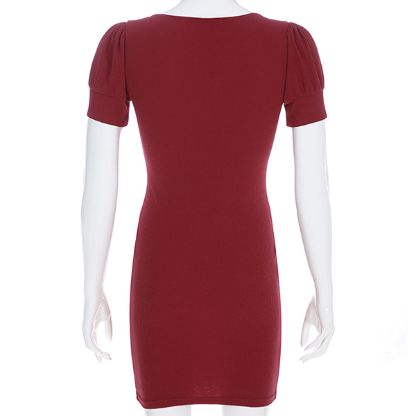 It is an easy thing to portray your elegant and charming image through this delicate dress. Solid color style,finished with puff sleeve,square collar and a fit silhouette,this dress not only can showcase your slender figure,,but also can enhance your feminine appeal. So why not save this dress for your fancy events?