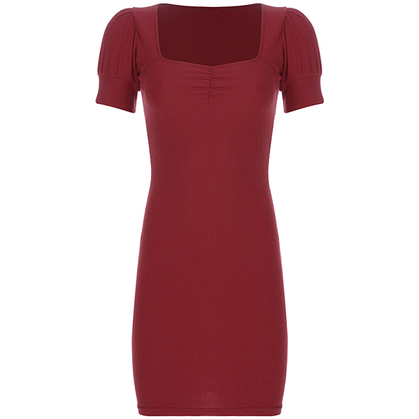 Elegant Solid Color Puff Sleeve Square Collar Slim Fit Dress