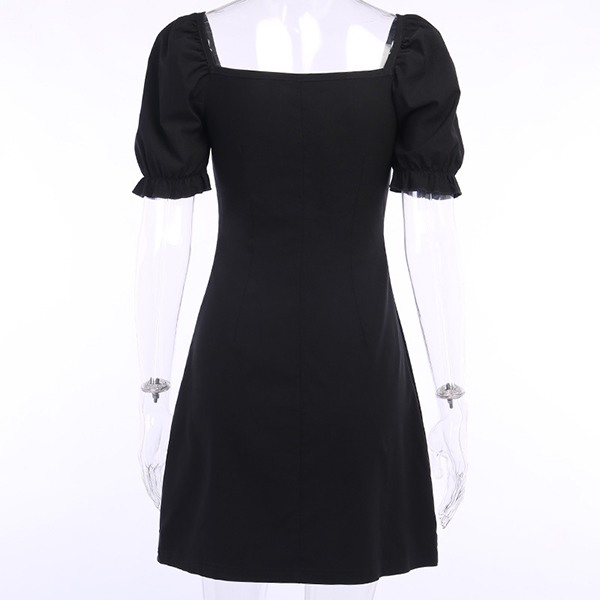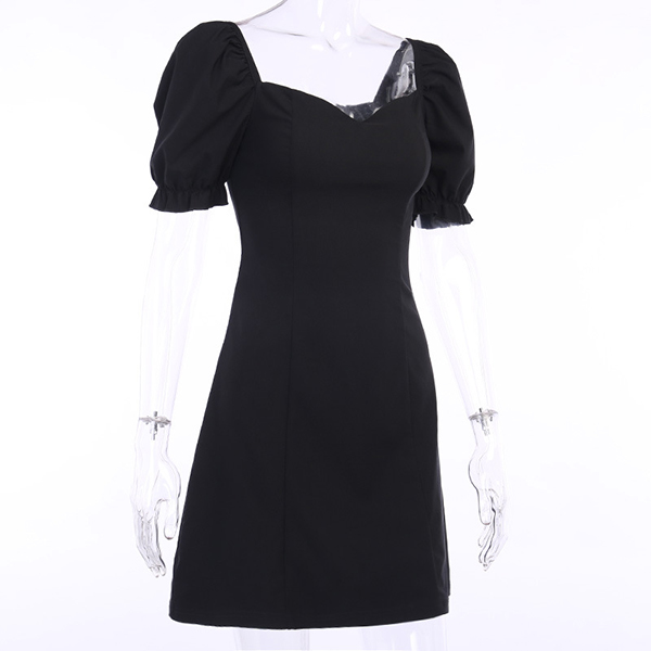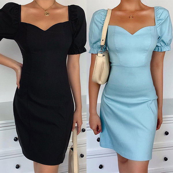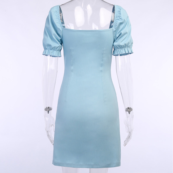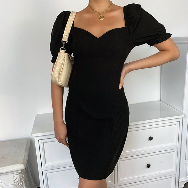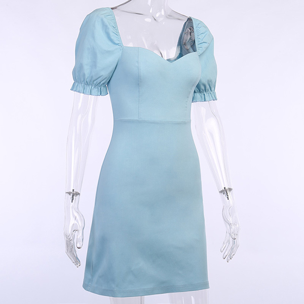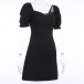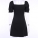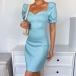 Elegant Solid Color Puff Sleeve Square Collar Slim Fit Dress