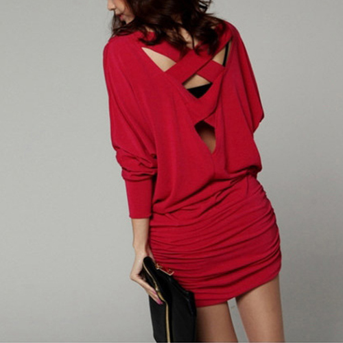 to your fashion closet. It is equipped with round neck, bat sleeve and back hollow out design, showing off