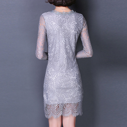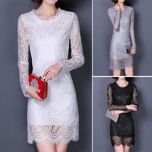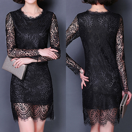 temperament can be perfect set off via this lace dress. Boasting round neck, long sleeve, hollow out and