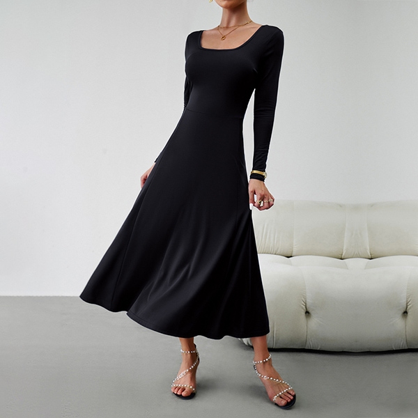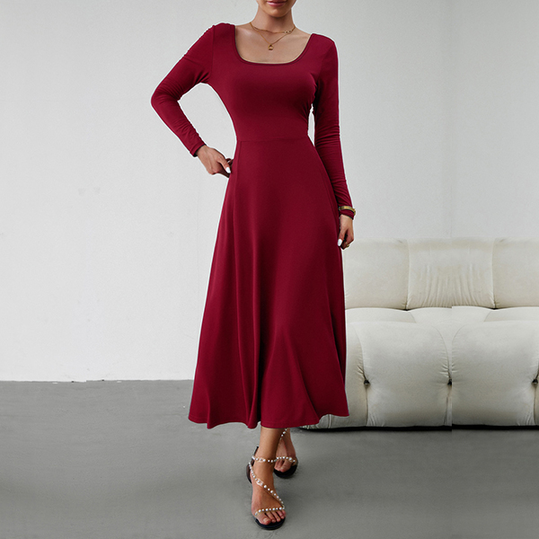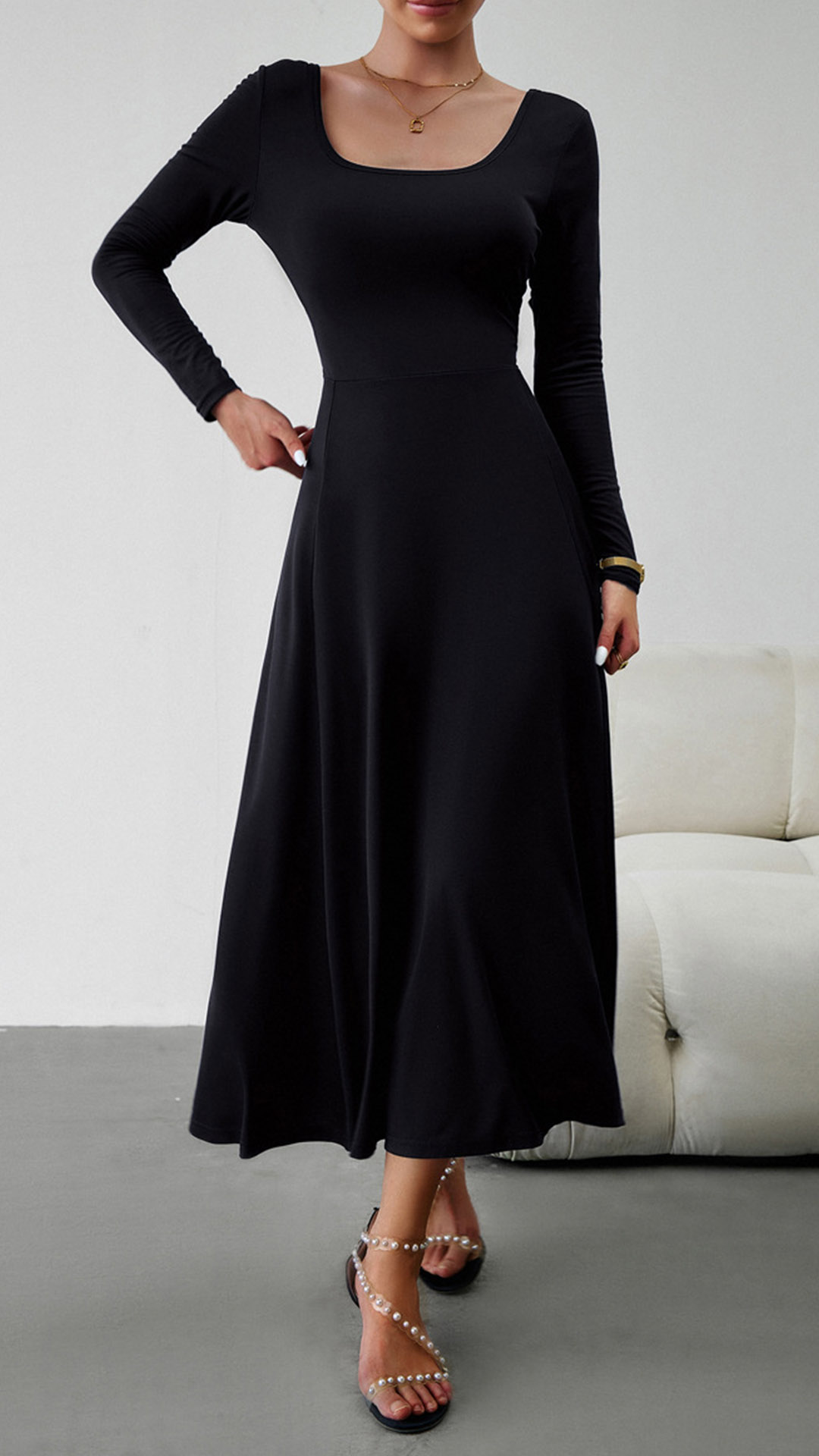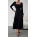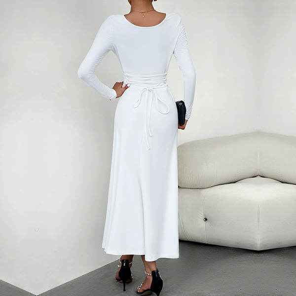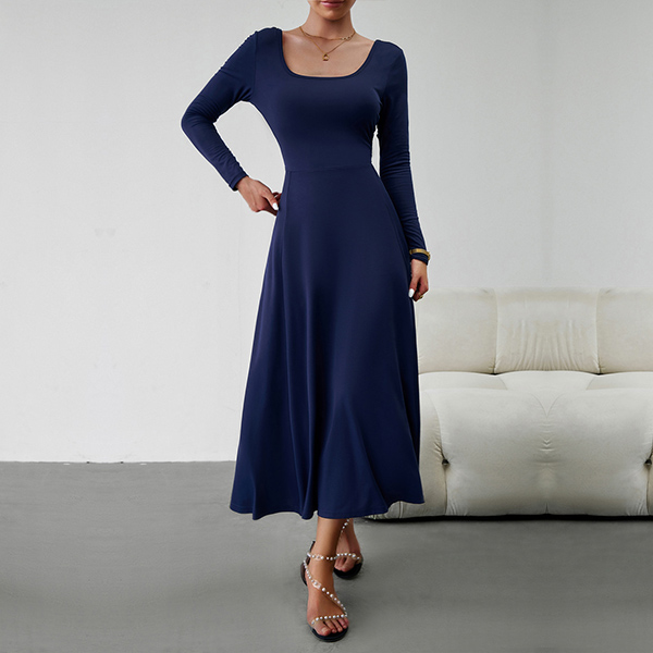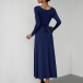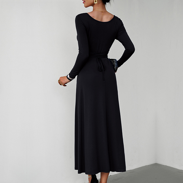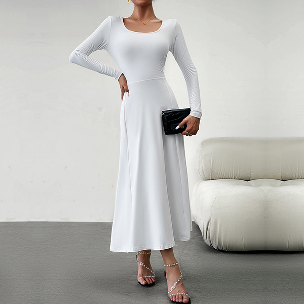 Elegant Solid Color Round Neck Long Sleeve Maxi Dress