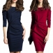 Elegant Solid Color Round Neck Long Sleeve Ruched Bodycon Dress