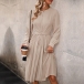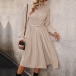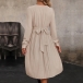 Elegant Solid Color Round Neck Ruched Long Sleeve Self-tie Pleated Dress