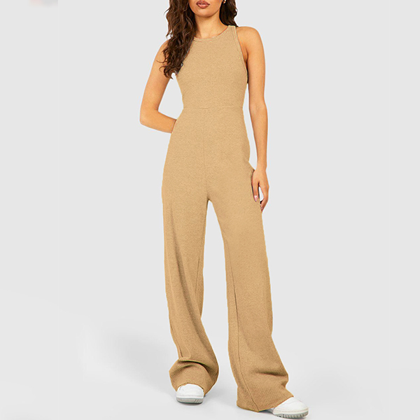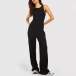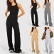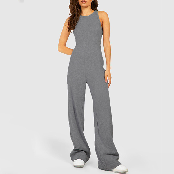 This sleek jumpsuit offers a streamlined, straight-cut silhouette for a polished, tailored look. The round neckline and sleeveless design create a modern, minimalist aesthetic, while the solid color palette allows the clean lines and tailored fit to take center stage. Perfect for daily wear.