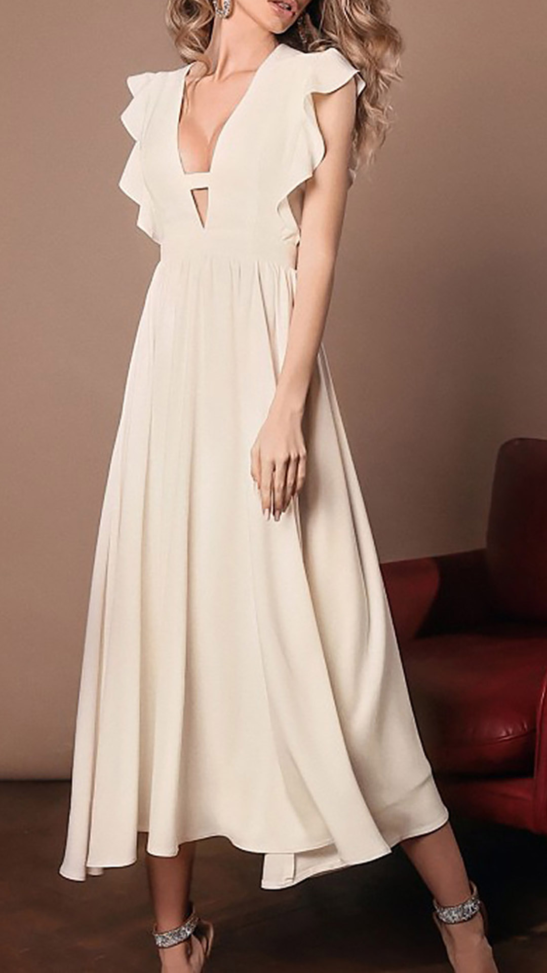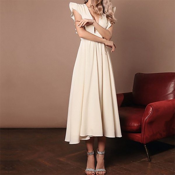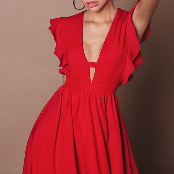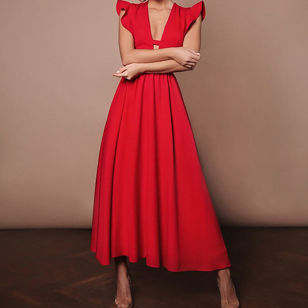This dress features a unique and elegant design, with a ruffled details that adds a touch of femininity and grace to the overall style. Color:Red,Black,Beige, which one do you like?