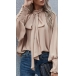 Elegant Solid Color Self-tie Bowknot Mock Neck Puff Long Sleeve Shirt