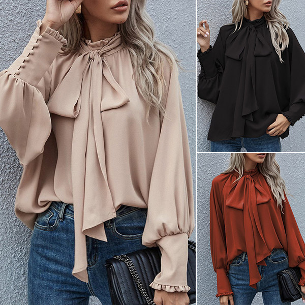 This shirt is typically made from high-quality materials, ensuring that it is comfortable and durable. The mock neck and puff sleeves create a classic and timeless look, while the self-tie bowknot detailing adds a touch of elegance and femininity. The overall design of this shirt is perfect for anyone looking for a versatile and stylish garment that can be worn for a variety of occasions.