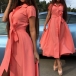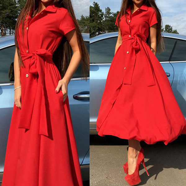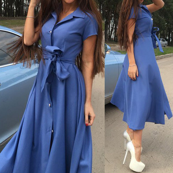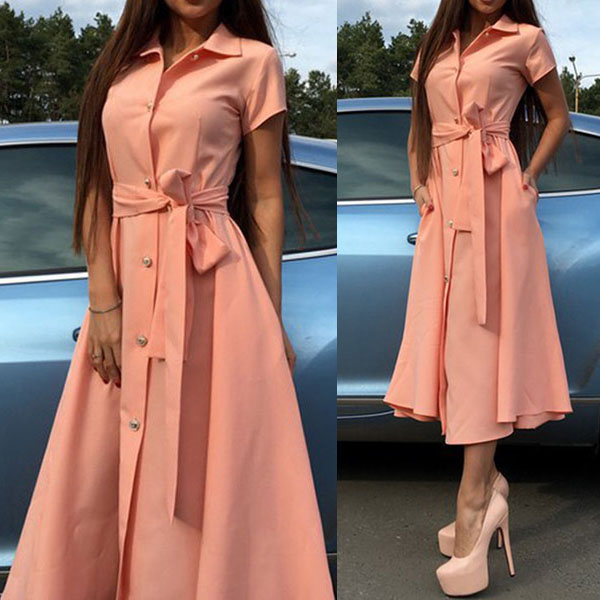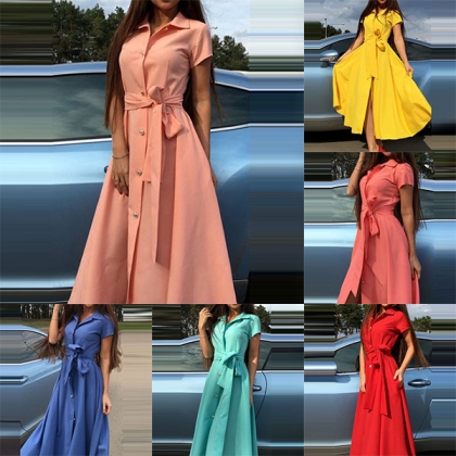 Emulate an elegant modern girl appearance with this shirt dress. Solid color style,designed with short sleeve,POLO collar,
