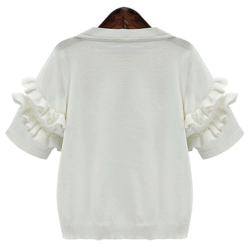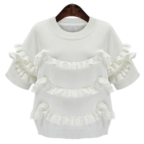 Elegant Solid Color Short Sleeve Round Neck Flouncing T-shirt