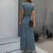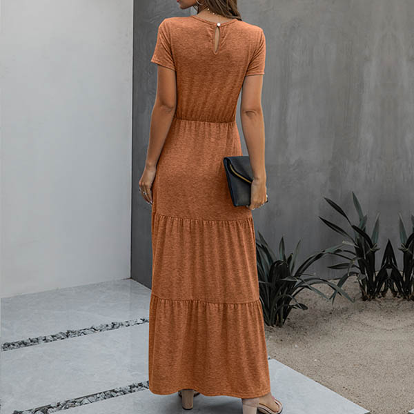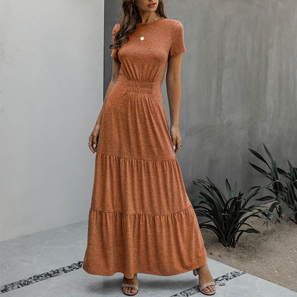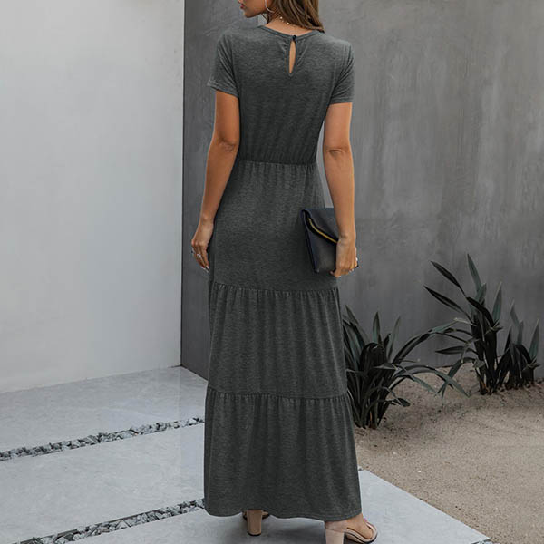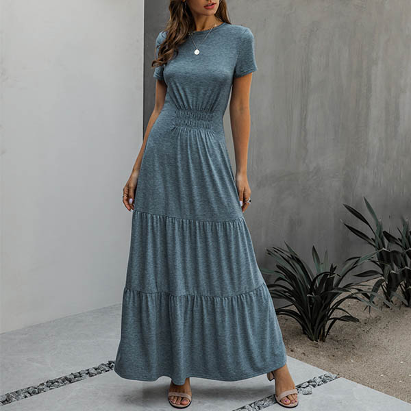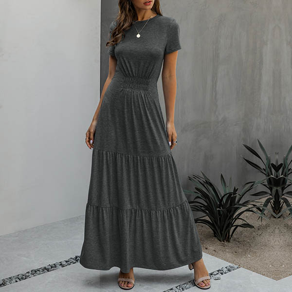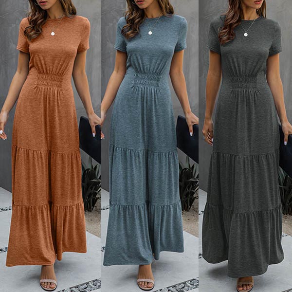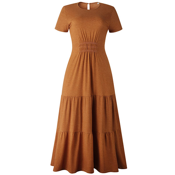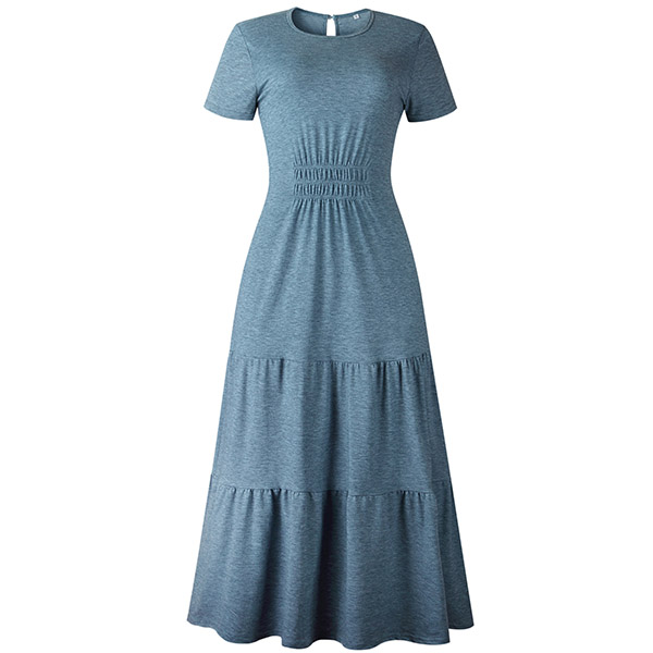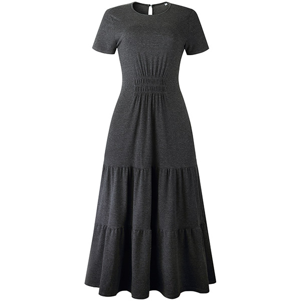 It is an easy thing to portray your elegant and generous image through this delicate dress. It boasts a solid color,with short sleeve,round neck and high waist design,this dress can showcase your slender figure and maintain the comfy.
