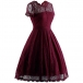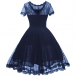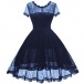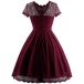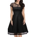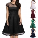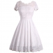 Elegant Solid Color Short Sleeve Round Neck High Waist Lace Dress