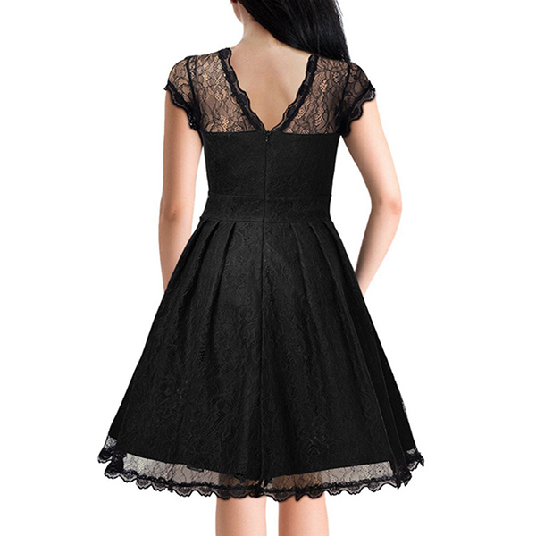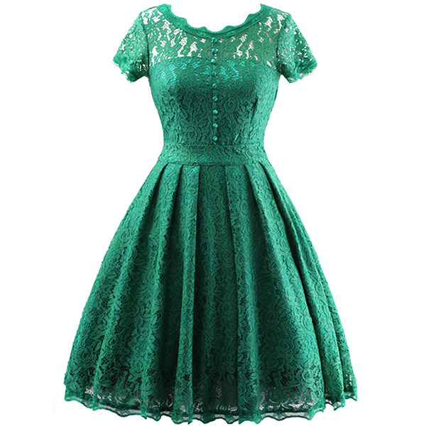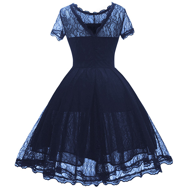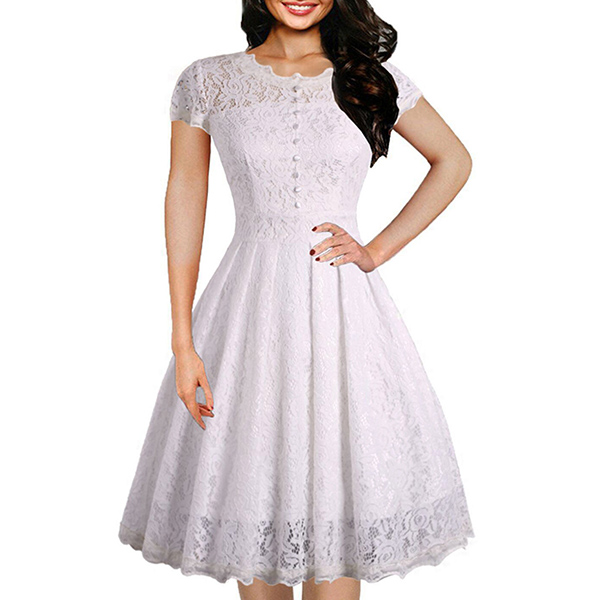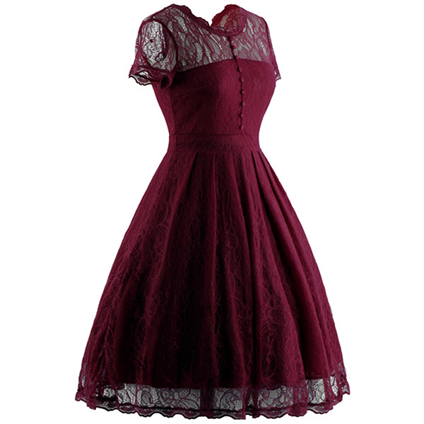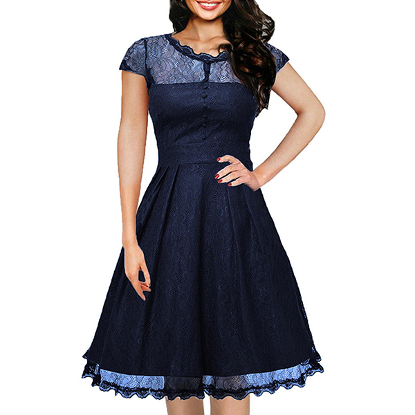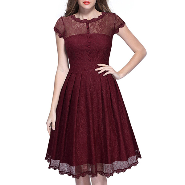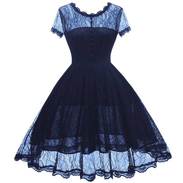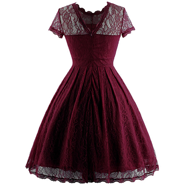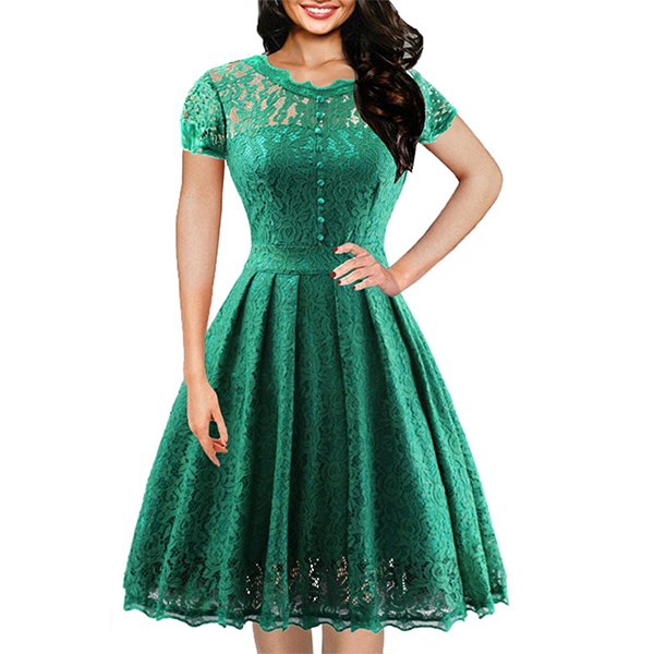 Wanna portray your elegant and charming image? Then you can make your eyes focused on this lace dress. It is finished with short sleeve,round neck,high waist and a clean,fit silhouette,this lace dress can exude your charming femininity. You can just dress it up with your sexy heels for a beautiful look.
