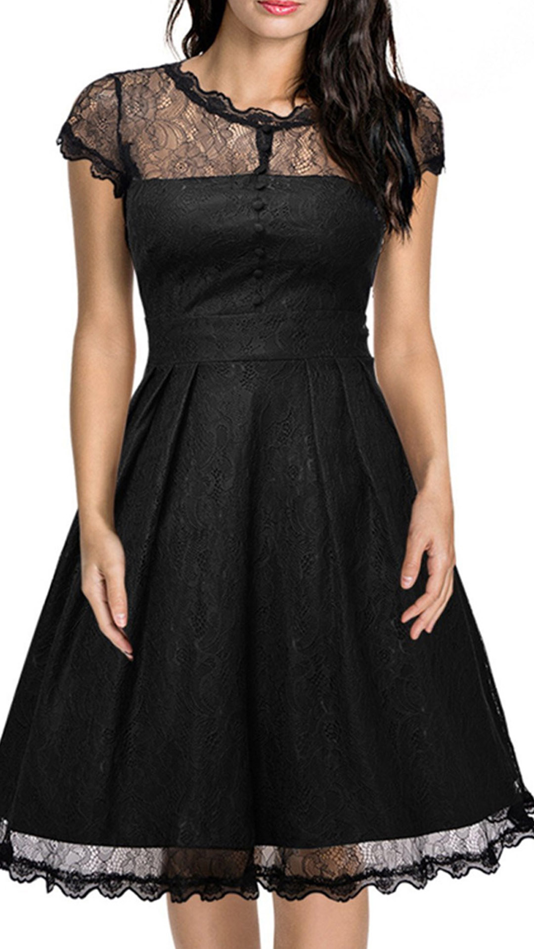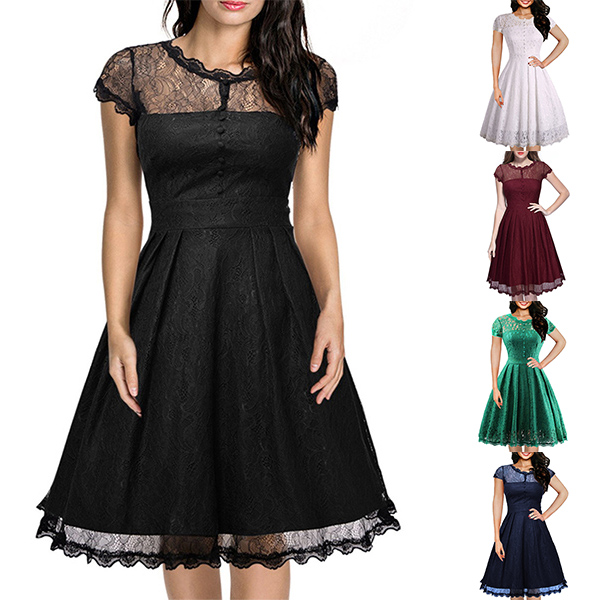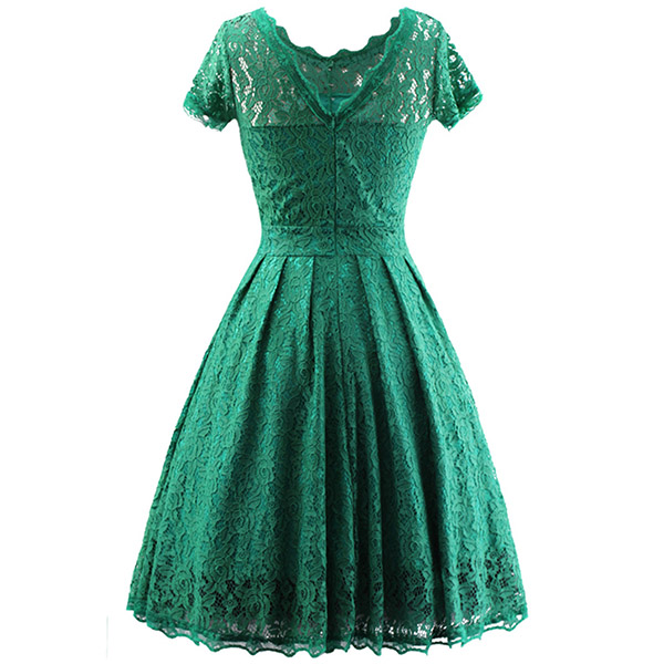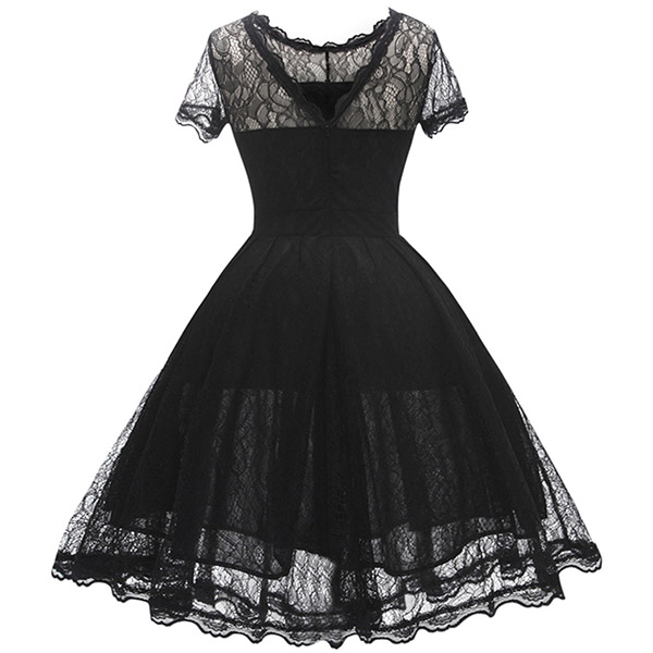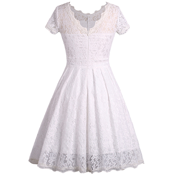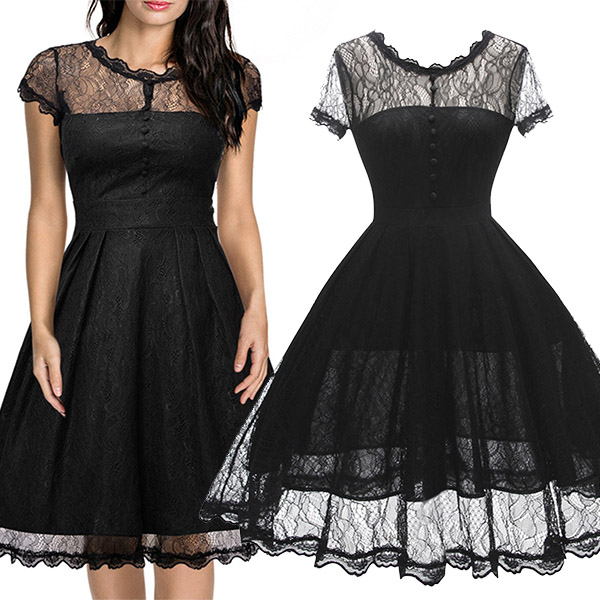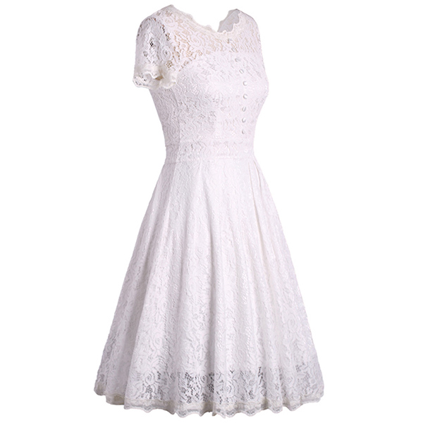Wanna portray your elegant and charming image? Then you can make your eyes focused on this lace dress. It is finished with short sleeve,round neck,high waist and a clean,fit silhouette,this lace dress can exude your charming femininity. You can just dress it up with your sexy heels for a beautiful look.