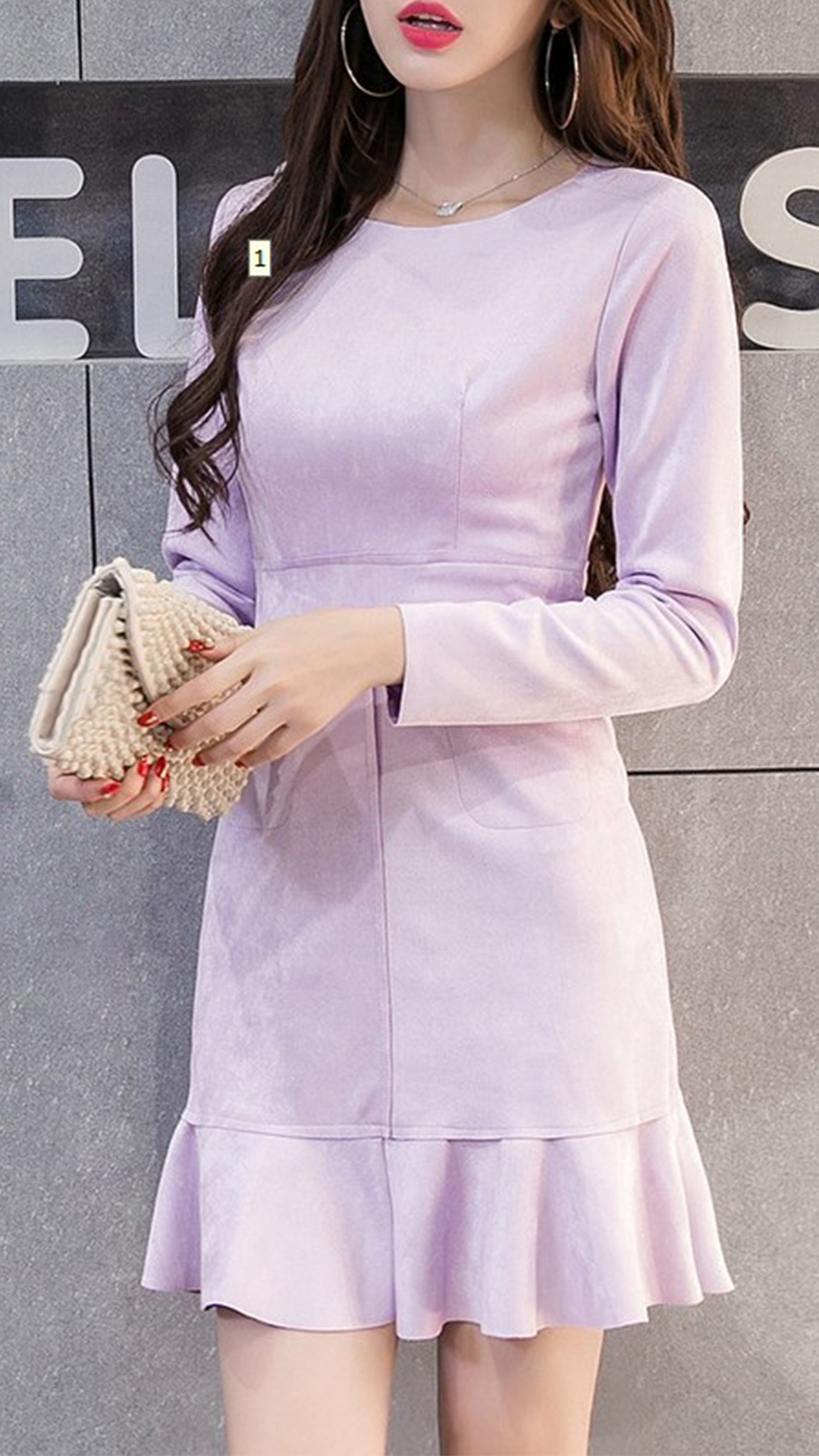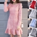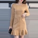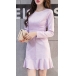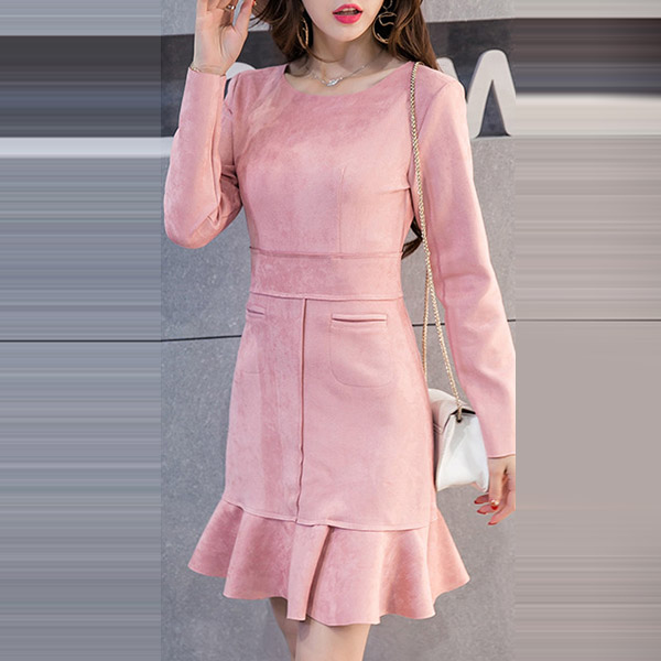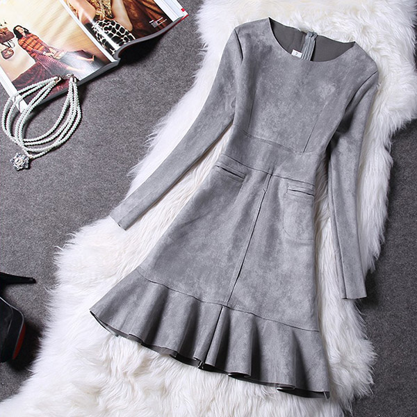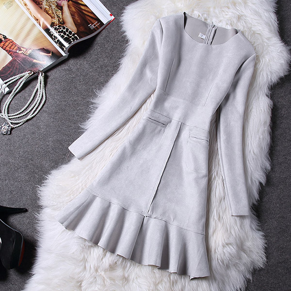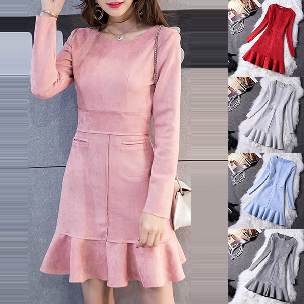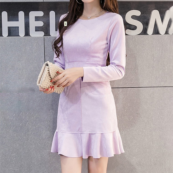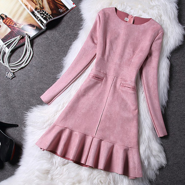 Hey,girls,you can trust in this delicate dress to portray your elegant and sweet side. Solid color tone design makes it look so stylish and generous. Finished with long sleeve,round neck,ruffle hem and a fit silhouette,this wonderful dress not only can showcase your slender figure,but also can enhance your entire charm. This is a dress which can be fit for different occasions. So why not buy one?