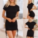 Elegant Solid Color Short Sleeve Round Neck Side-drawstring Slim Fit Dress