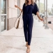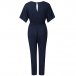 Elegant Solid Color Short Sleeve V-neck High Waist Jumpsuit
