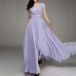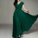 Elegant Solid Color Short Sleeve V-neck High Waist Maxi Dress