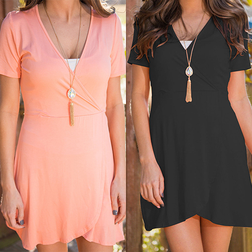 with short sleeve,v-neck and irregular hem design,stylish and cozy. No matter for your working,dating,