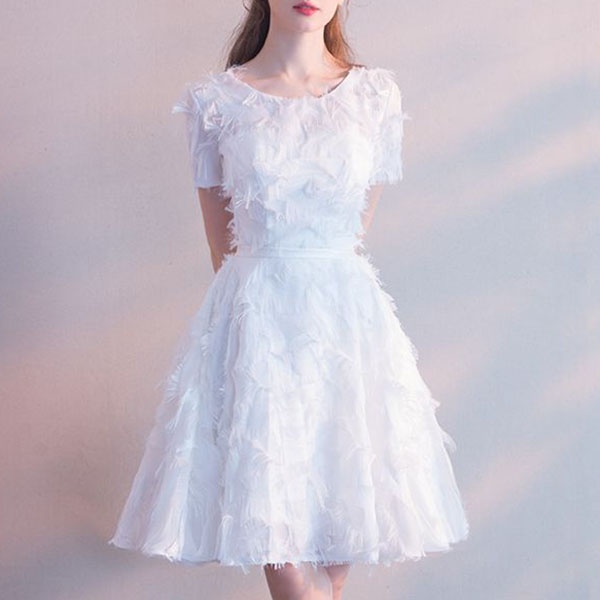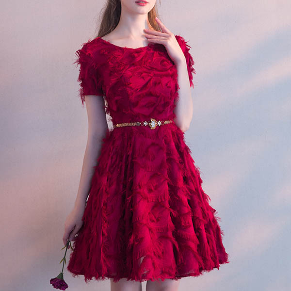 Elegant Solid Color Short Sleeve Waist Tassel Spliced Party Dress