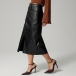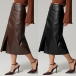 Elegant Solid Color Side Patch Pockets Front Slit Artificial Leather PU Skirt