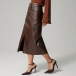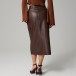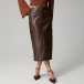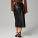 This skirt features a solid color design, side patch pockets, front slit detail, and artificial leather material for a chic and sophisticated look.