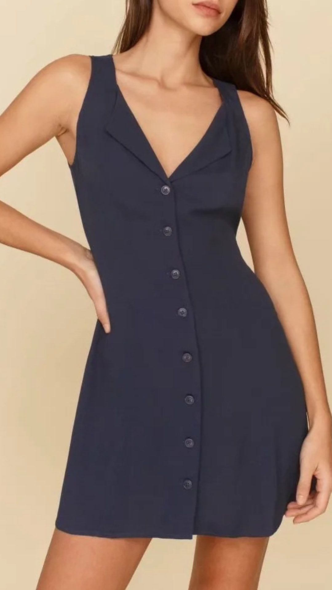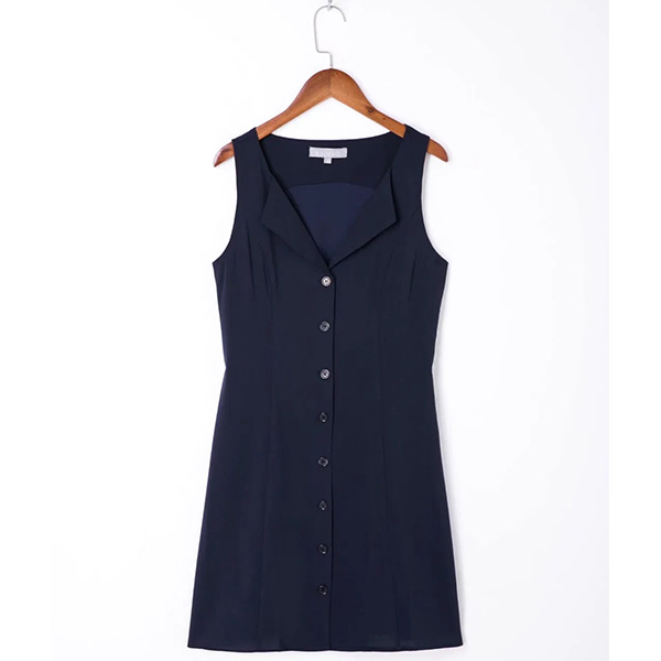 Elegant Solid Color Sleeveless Laple Buttoned A-lined Dress