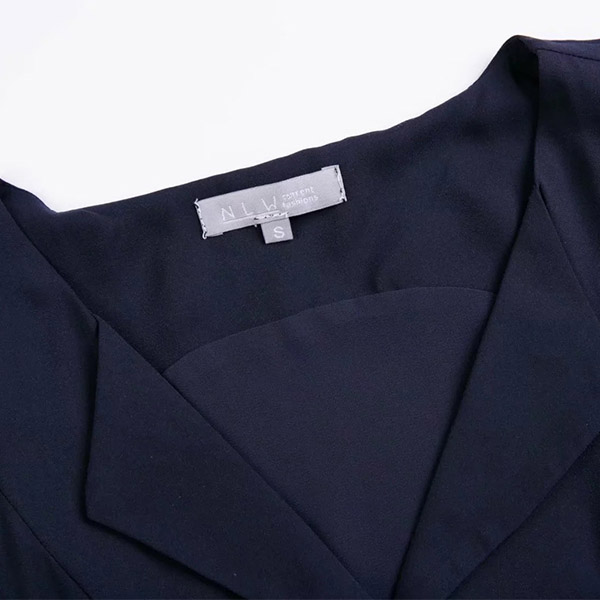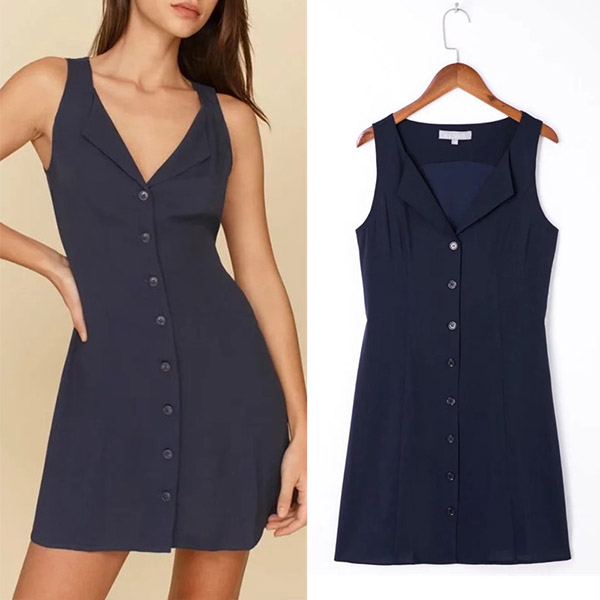 How about this elegant dress? It has a lapel collar and is buttoned down the front. It is made of a high quality and soft material that will make you feel comfortable all day long. This dress is perfect for any formal or semi-formal occasion.