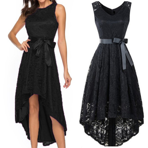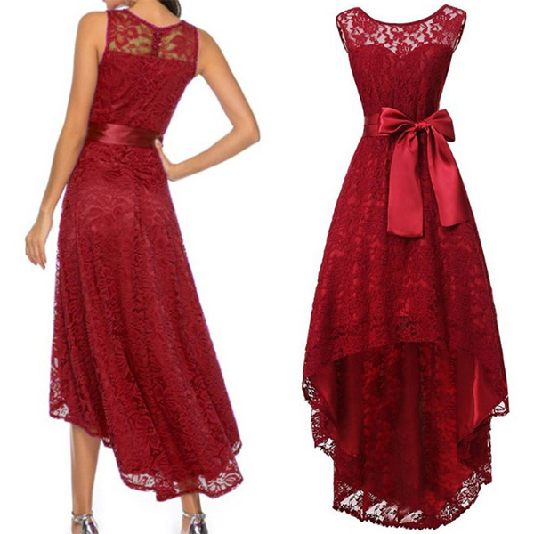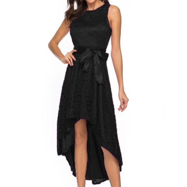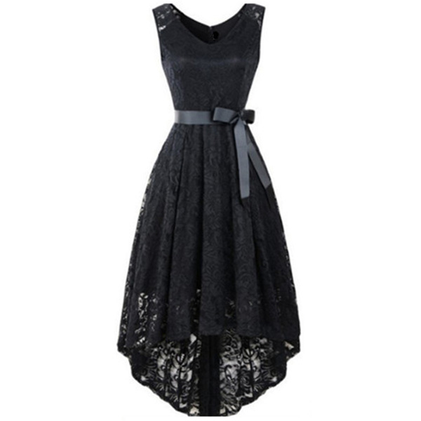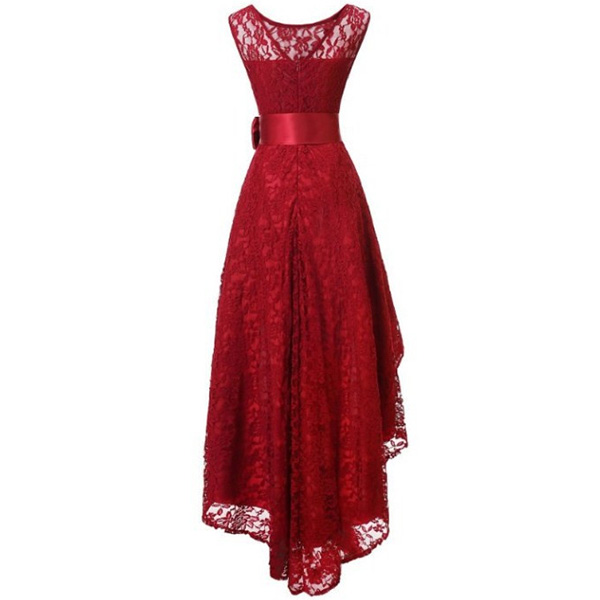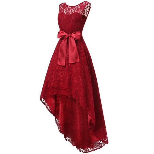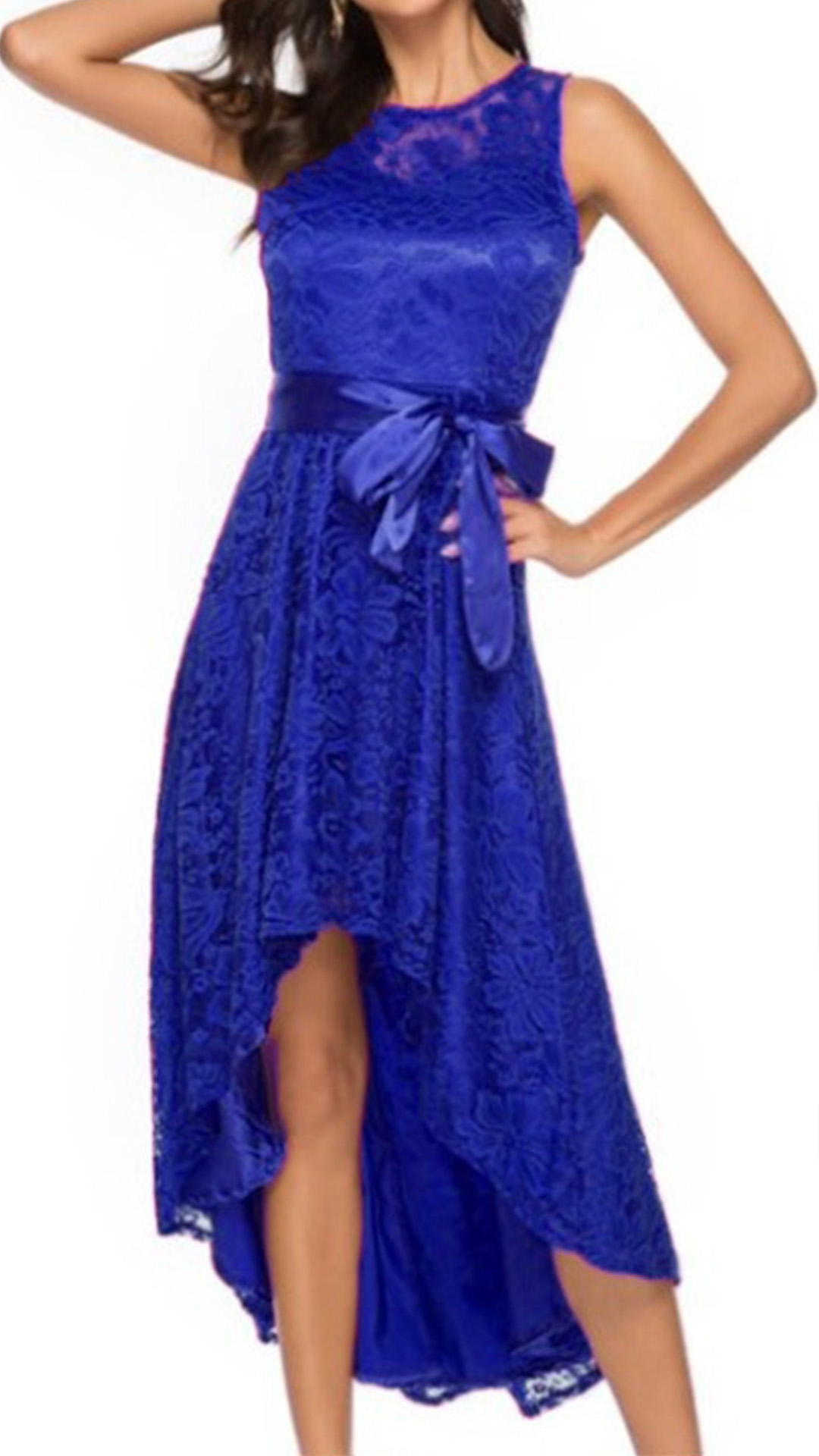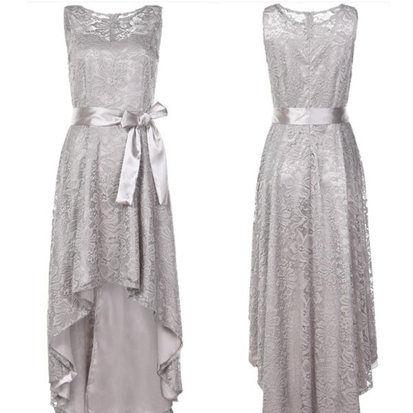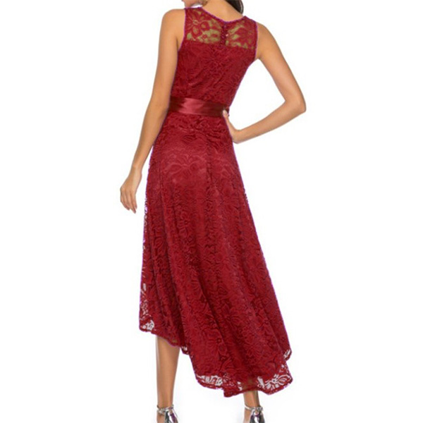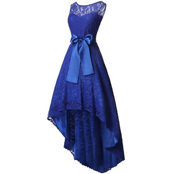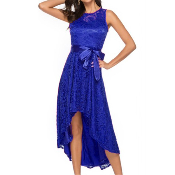 If you are invited to some fancy events but don't know what to wear,then you can just have a try this elegant and delicate lace dress. It is finished with sleeveless,round neck and a high-low hem design,chic and distinctive. The bow-knot design at the waist part can lend you a dash of sweet and charming vibes. Dress it up with your sexy heels for a beautiful party look!