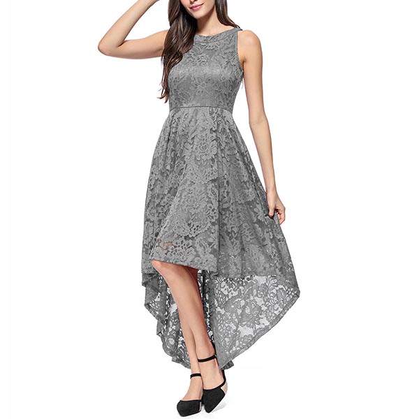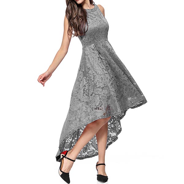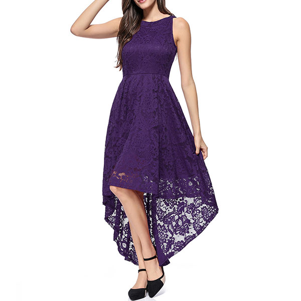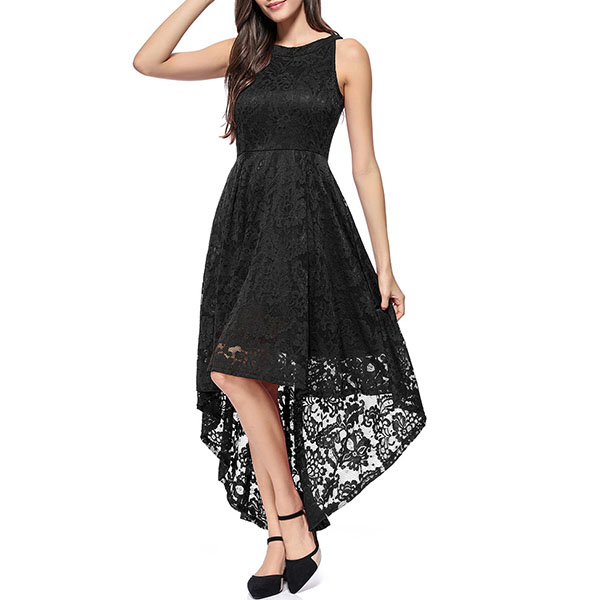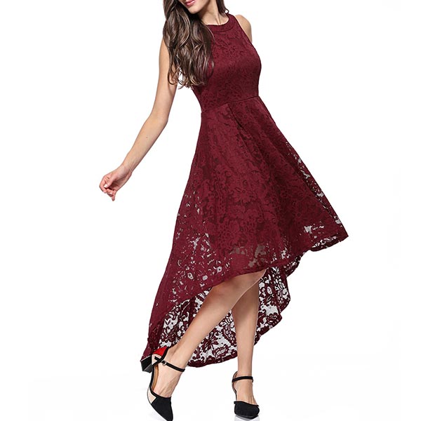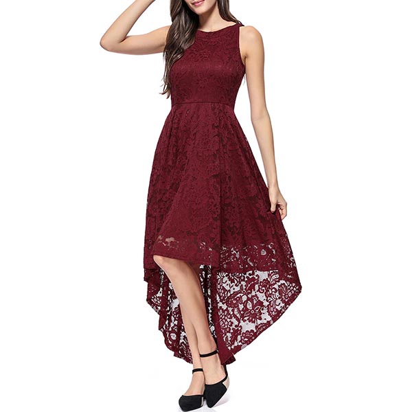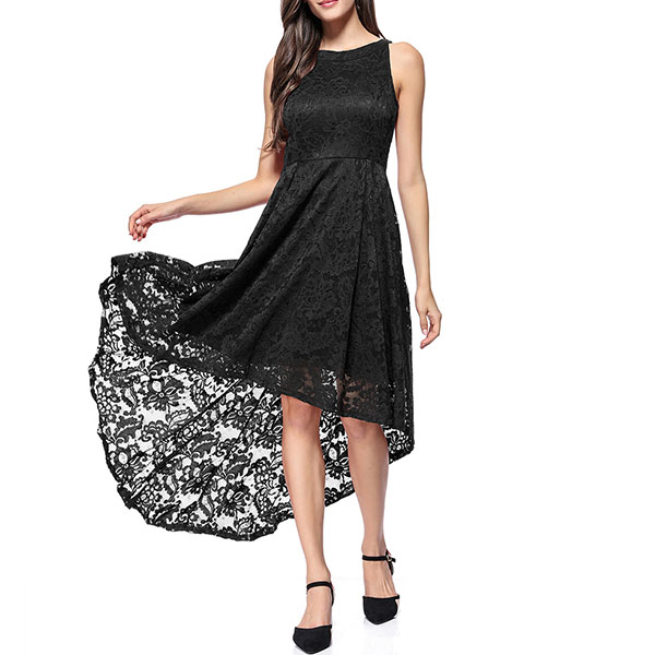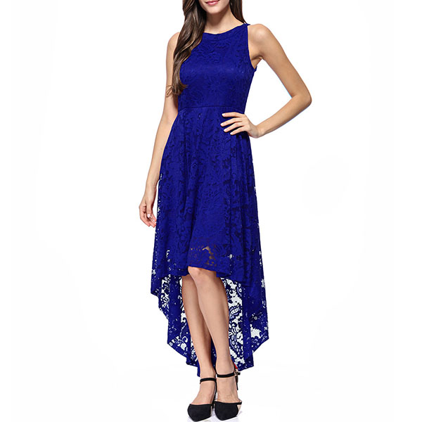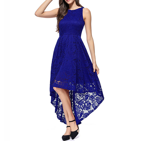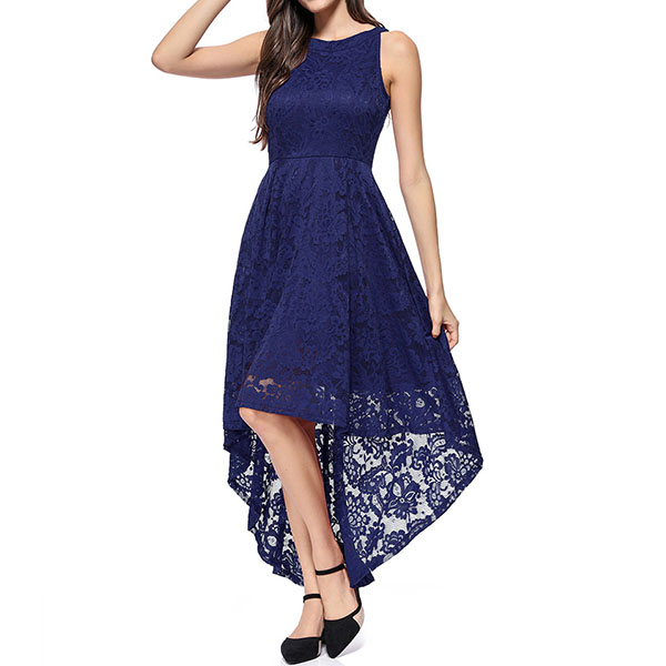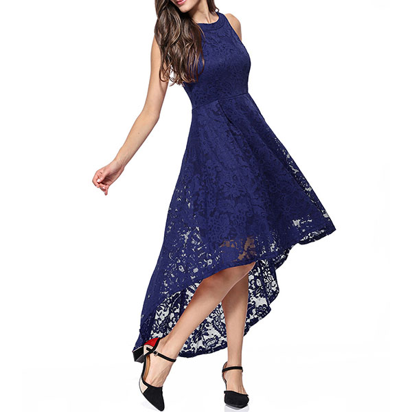 Flaunt your elegant and charming style with a well-tailored number and this gorgeous lace dress makes for the perfect example. Outfitted with sleeveless,round neck and a high-low hem,this dress can express your beauty and charm. So why not save one for your dinner dates and cocktail parties?
