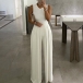 Elegant Solid Color Sleeveless Round Neck High Waist Jumpsuit