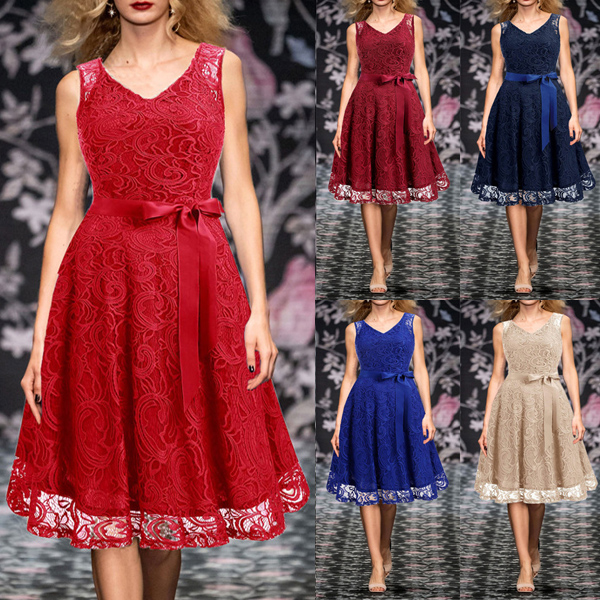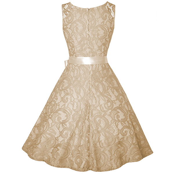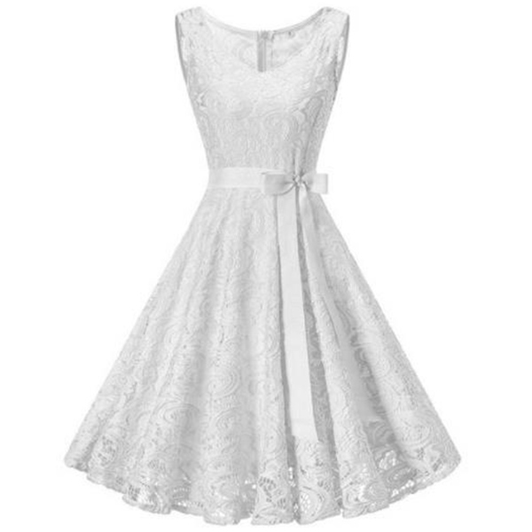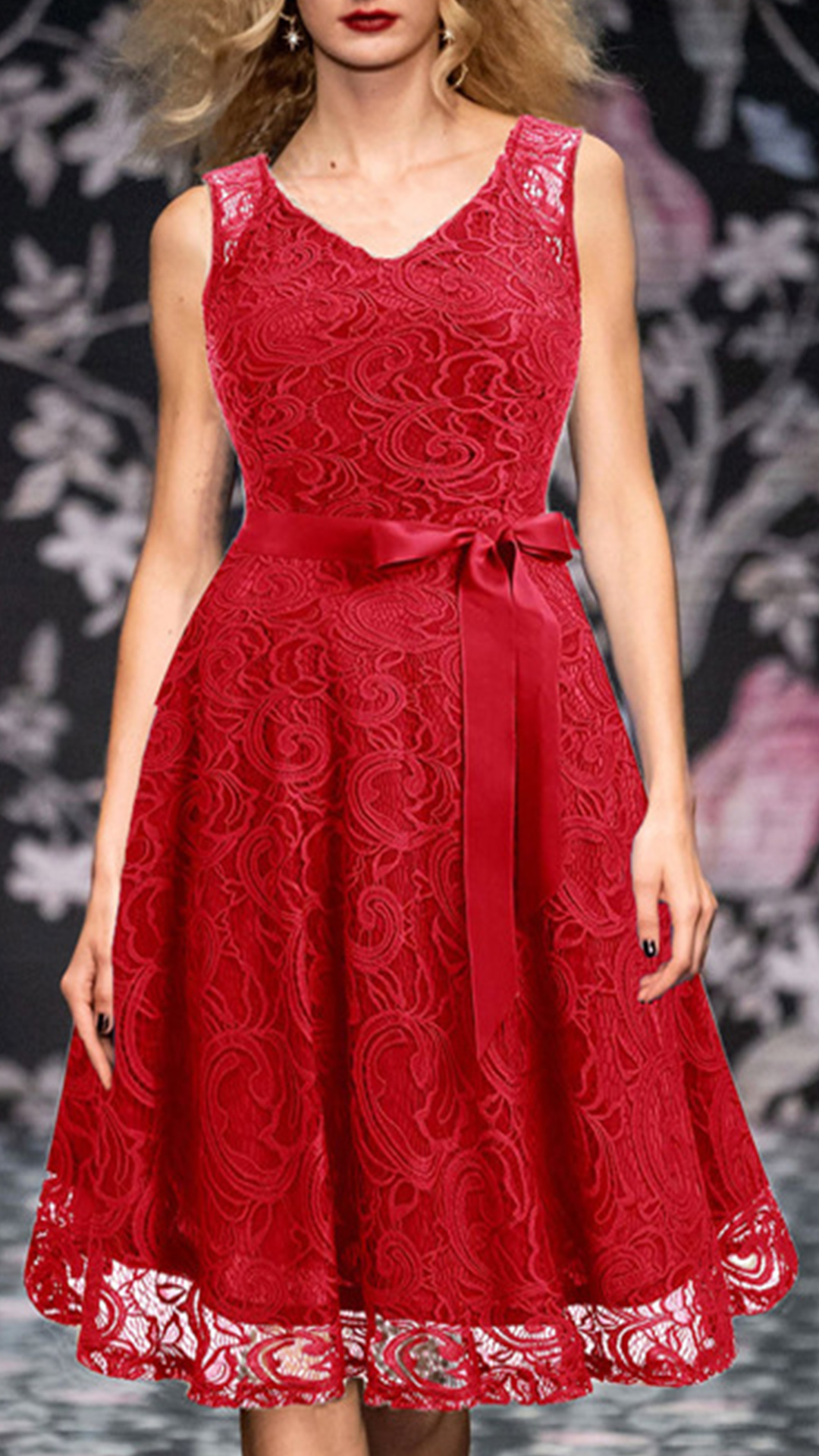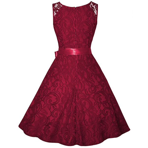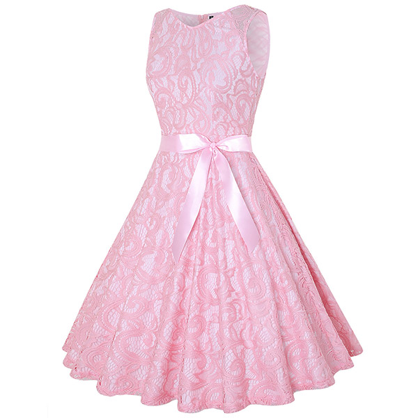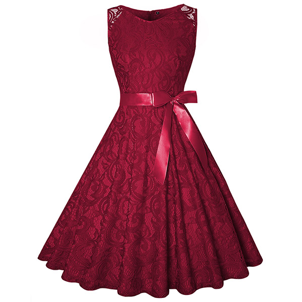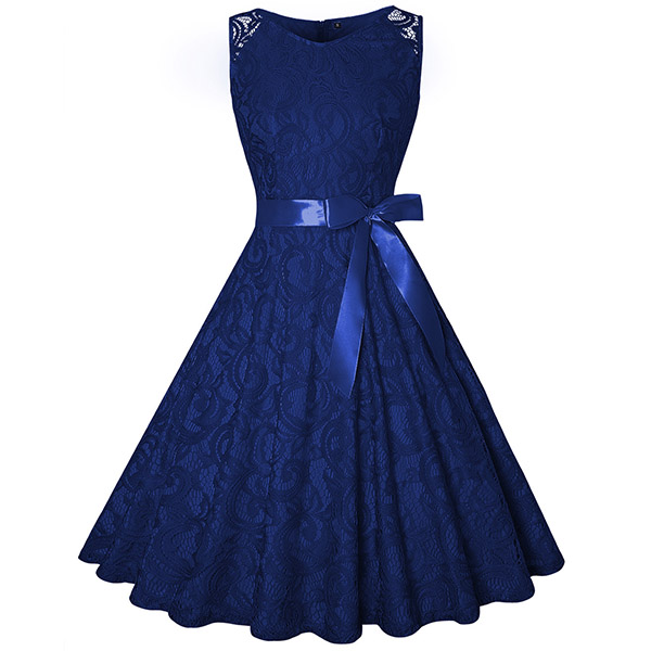 For every girl,a stylish and charming lace dress is an essential. So what are you waiting for if you still not have one in your wardrobe? It is finished with sleeveless,round neck and high waist design,this dress not only can showcase your slender figure,but also can exude your flirty and feminine side. Moreover,the bow-knot waist strap design will further enrich the design style.