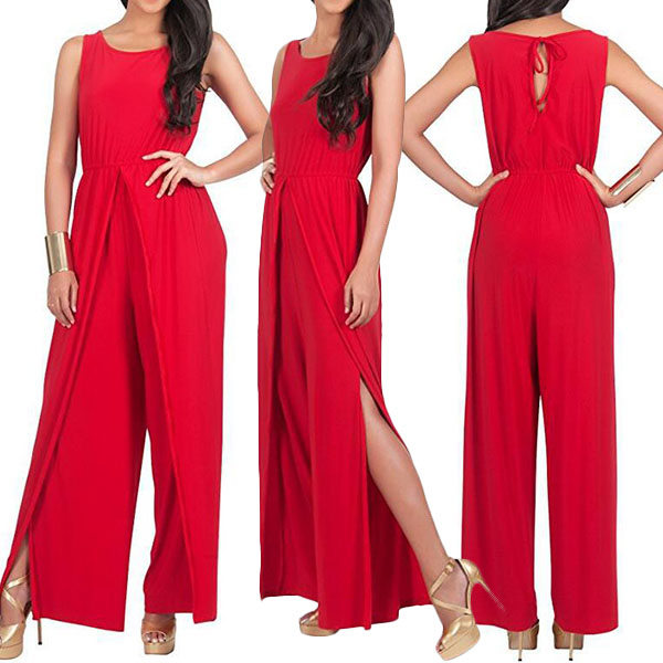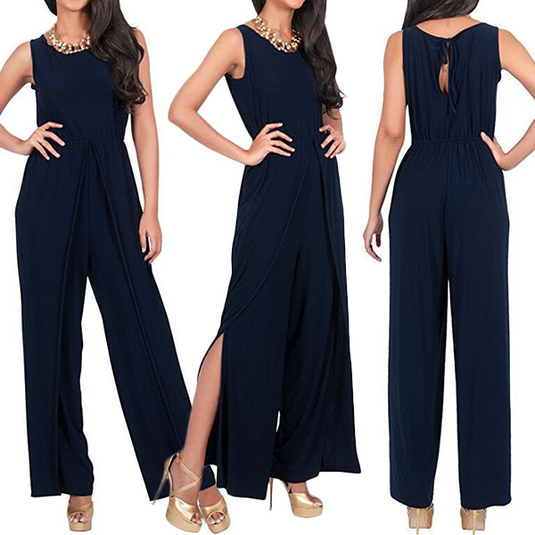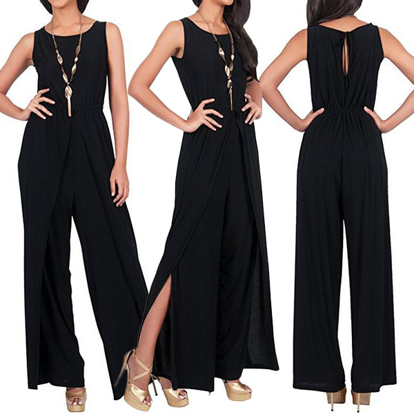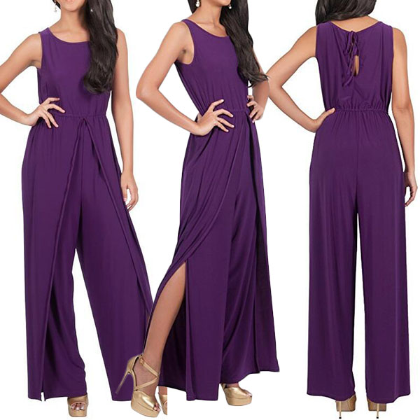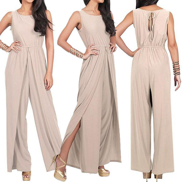 Exude your elegant temperament and charming femininity through this jumpsuit. Solid color style,designed with sleeveless,