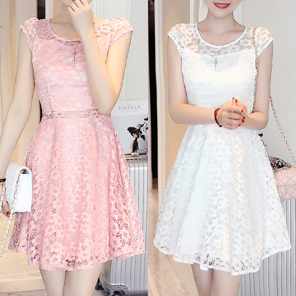 If you're in search for a dress that can easily upgrade your style, look no further than this dress! Hollow out lace details make this