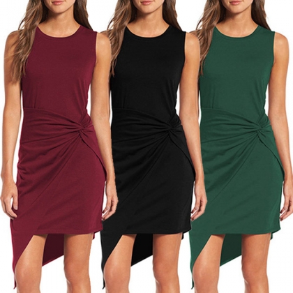 Elegant Solid Color Sleeveless Round Neck Irregular Hem Dress