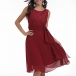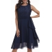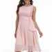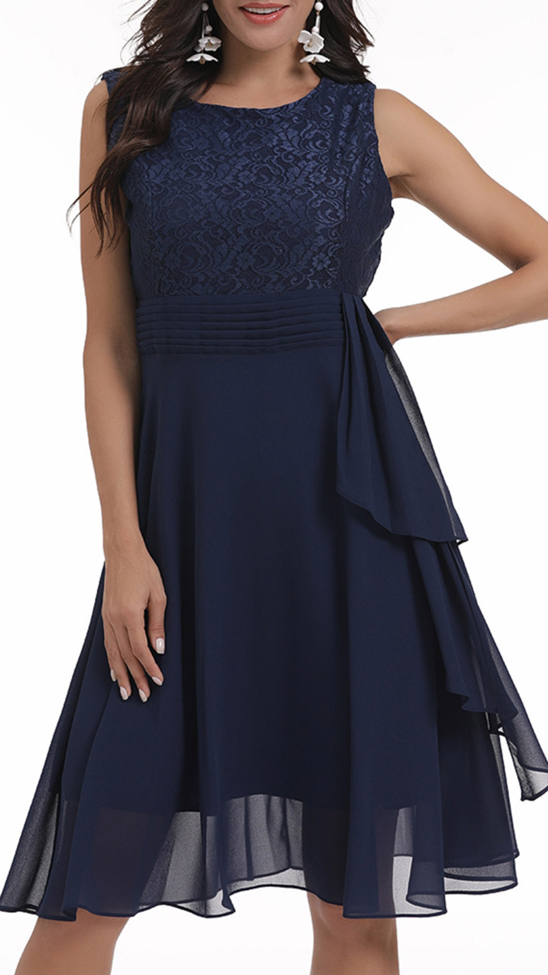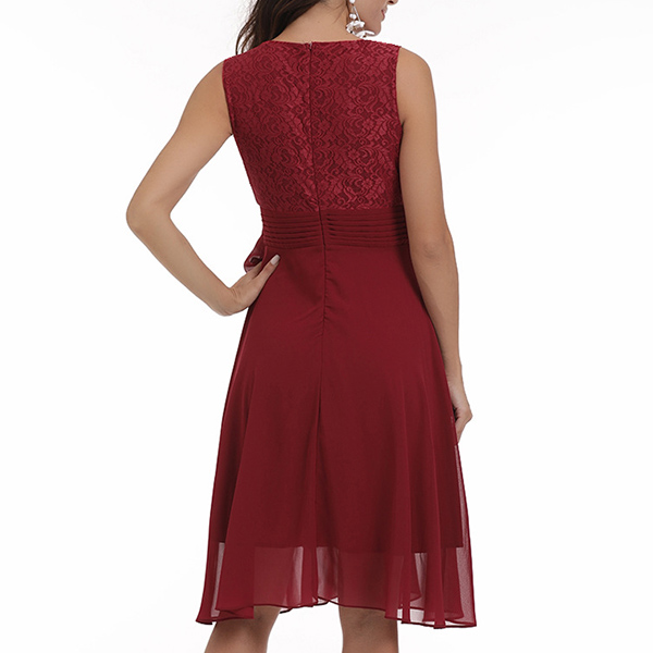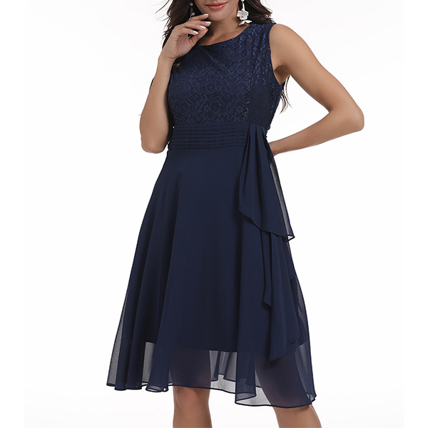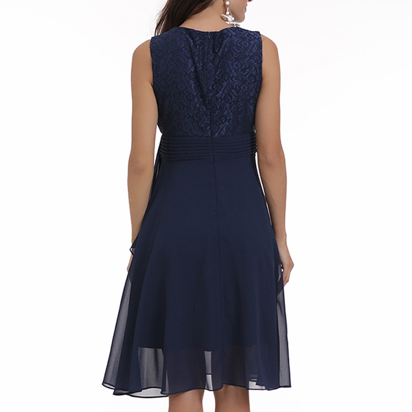 Elegant Solid Color Sleeveless Round Neck Lace Spliced Chiffon Dress