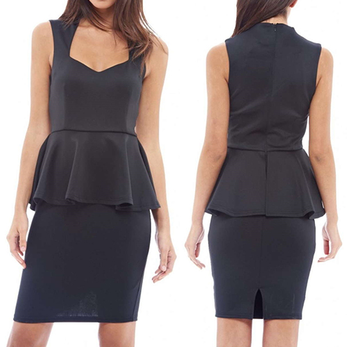 It features solid color style,with sleeveless,little v-neckline and slim fit design,elegant and refined.