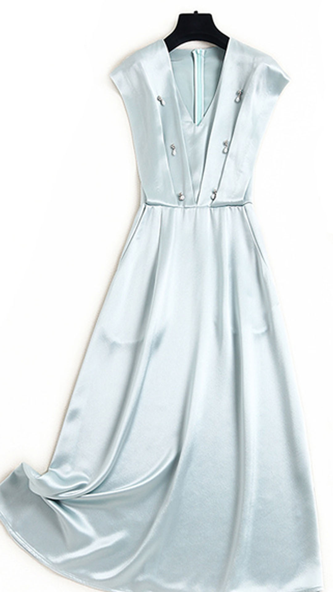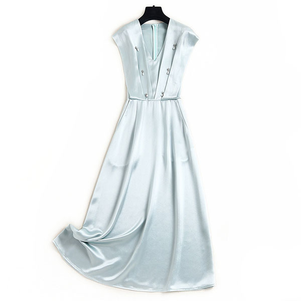 Elegant Solid Color Sleeveless V-neck High Waist Beaded Party Dress