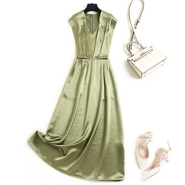 Flaunt your elegant and charming style with a well-tailored number and this gorgeous dress makes for the perfect example. Boasts a solid color,with sleeveless,v-neck and high waist design,this piece not only can showcase your slender figure,but also can express your beauty and charm. Trust me,this dress won’t let you disappointed!