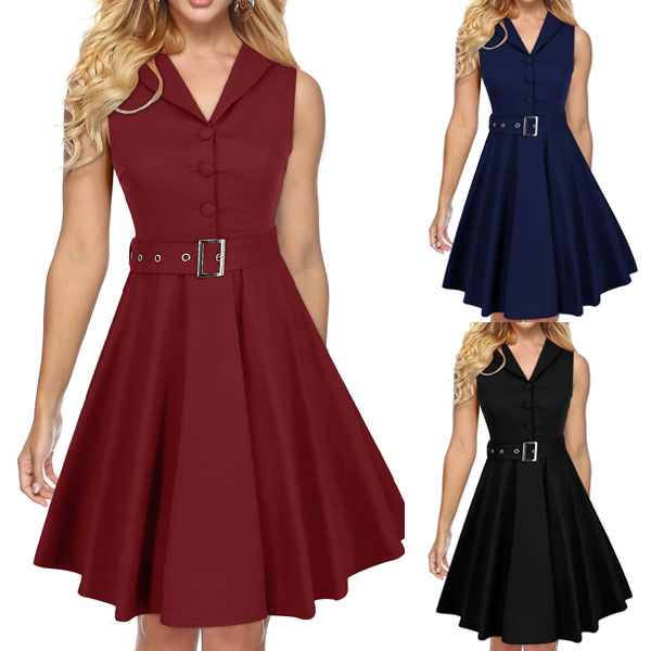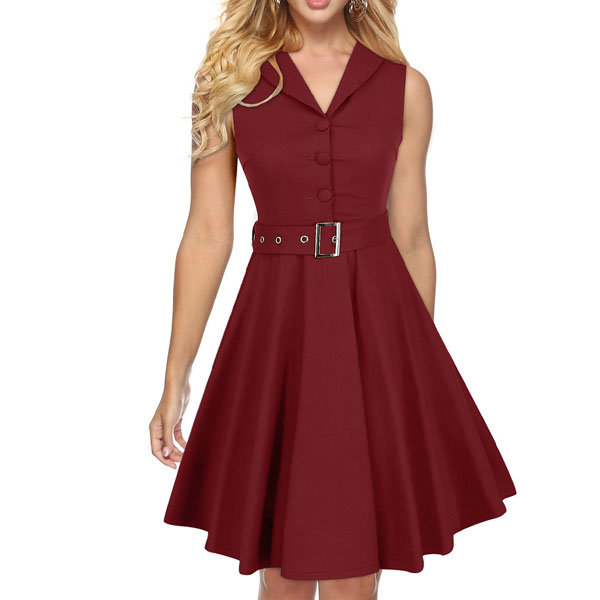 You can portray your elegant and charming image with a delicate dress such as this creation. Boasts a solid color,finished with sleeveless,v-neck and high waist design,this dress can showcase your slender figure while it exudes your charming feminine appeal. This is a dress which can be fit for different occasions.