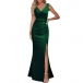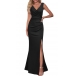 Elegant Solid Color Sleeveless V-neck Ruched Slit Bodycon Party Dress
