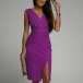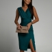When you wanna portray your elegant and charming image,you can just have a try this delicate dress. Solid color style,the v-neck and wrinkled design will make this piece full of flirty and stylish sense,while the fit silhouette design can showcase your slender figure. For your fancy events,you can trust in this piece to express your beauty and charm.