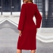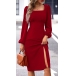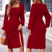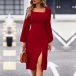 Elegant Solid Color Square Neck Long Sleeve Slit Bodycon Dress
